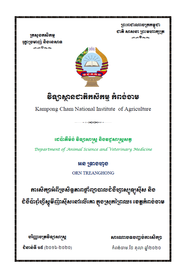ការសិក្សាអំពីប្រសិទ្ធភាពថ្នាំព្យាបាលជំងឺហ្វាស្យូឡូស៊ីស និងជំងឺប៉ារ៉ាំហ្វីស្ដូមីញ៉ាស៊ីសនៅលើគោ ក្នុងស្រុកព្រៃឈរ ខេត្តកំពង់ចាម