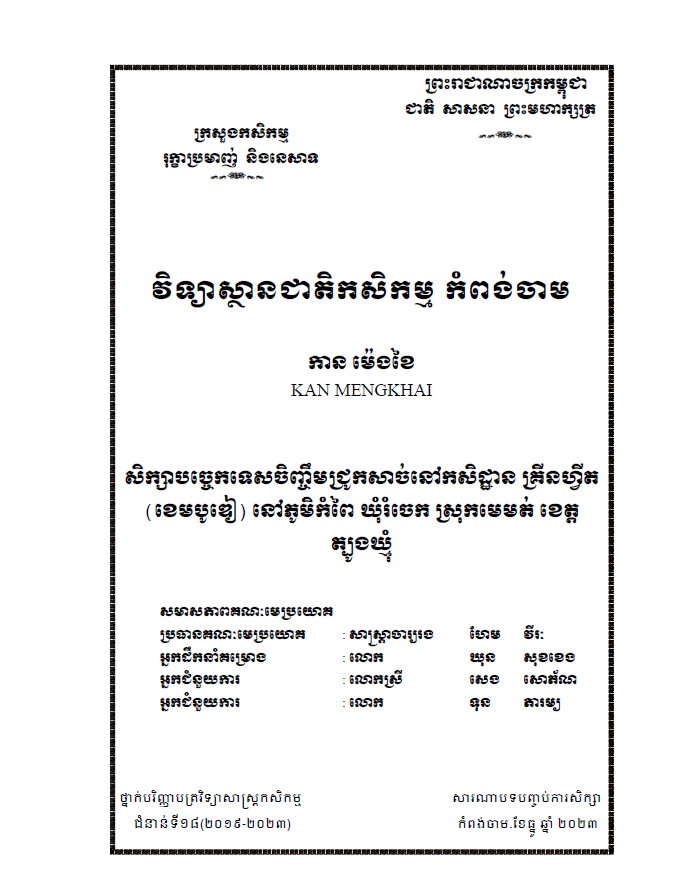 សិក្សាចំណេះដឹង ឥរិយាបថ និងការអនុវត្តរបស់កសិករចិញ្ចឹមជ្រូកក្រោយពេលផ្ទុះជំងឺប៉េស្ដជ្រូកអាហ្រ្វិក នៅស្រុកអូរាំងឪ ខេត្តត្បូងឃ្មុំ